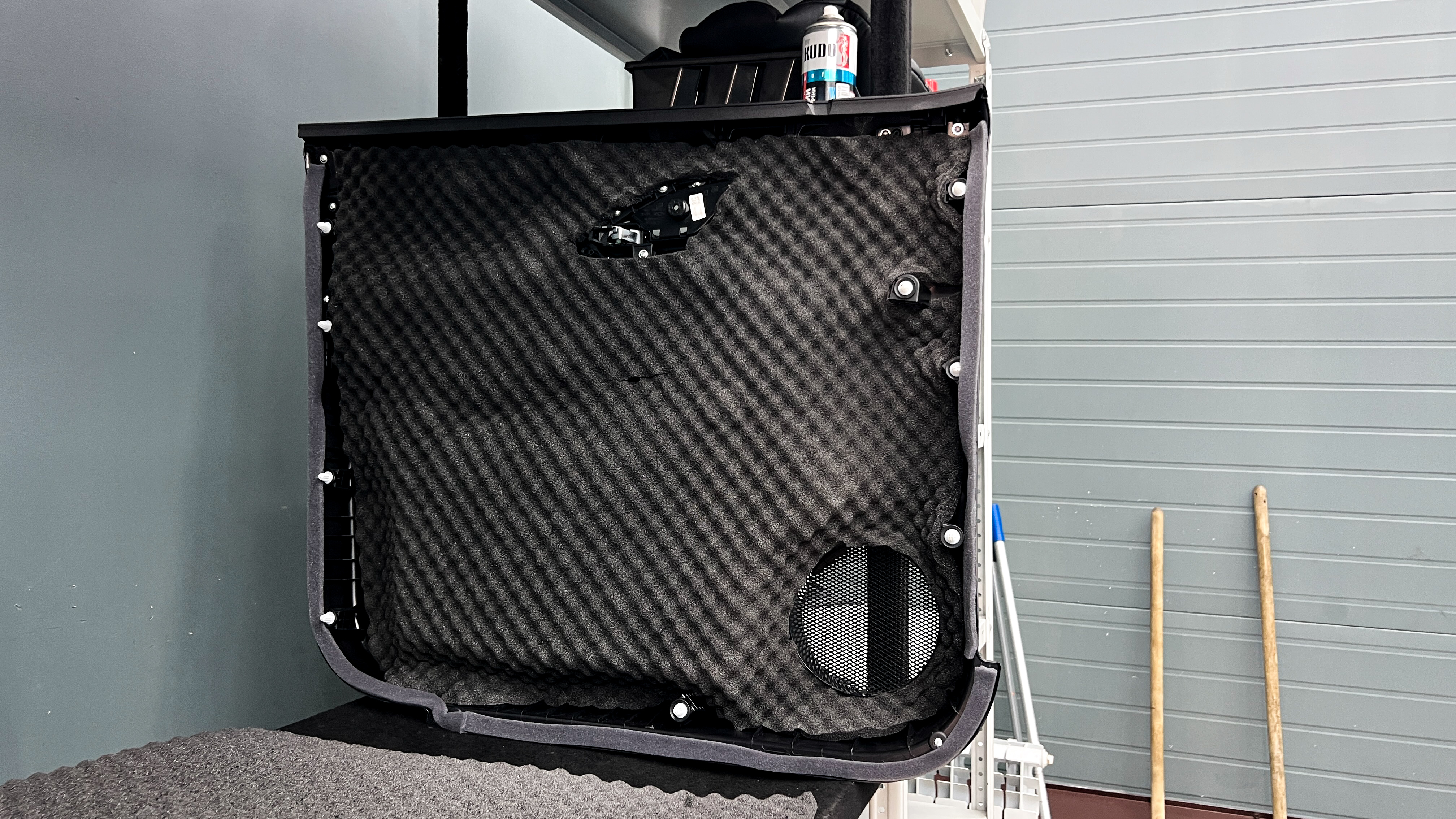 Обшивку пятой двери оклеиваем Flex А15, для устранения ненужных скрипов и бряков.