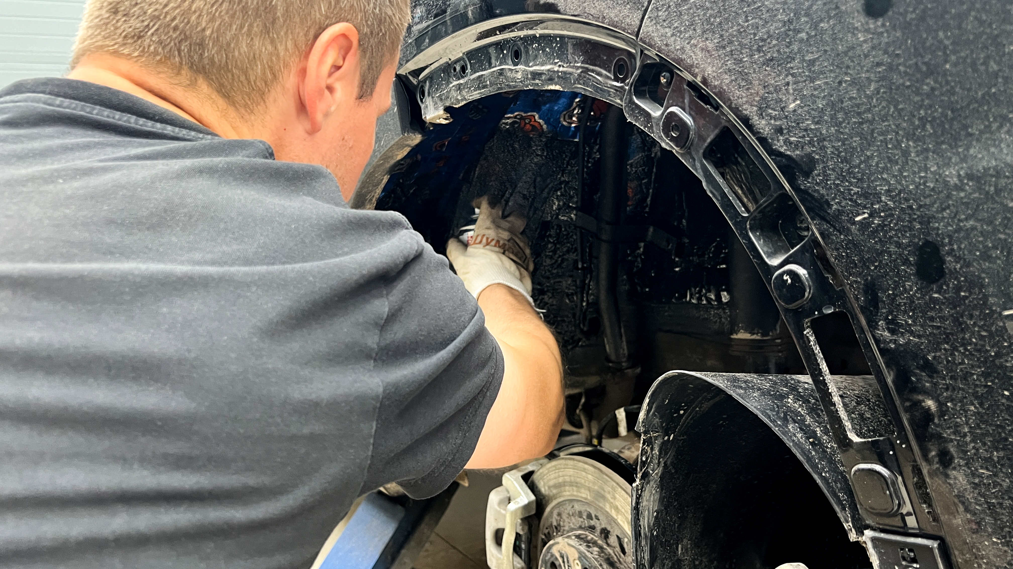 Завершаем шумоизоляцию арок обратной сборкой, устанавливаем подкрылки и колеса на место