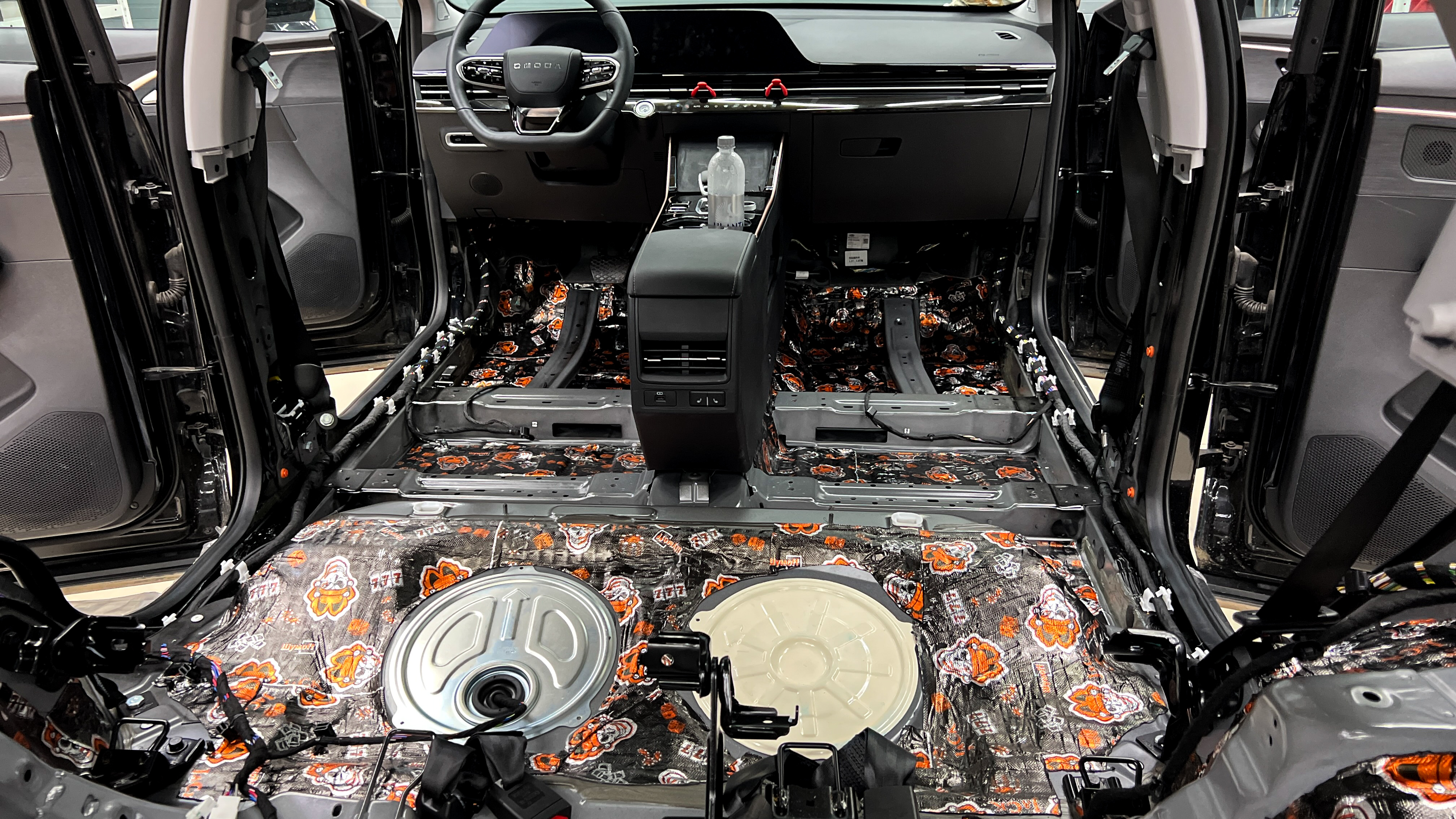 Весь пол от моторной перегородки и под задним сиденьем оклеиваем шумо и теплоизолятором Шумофф Base 4.