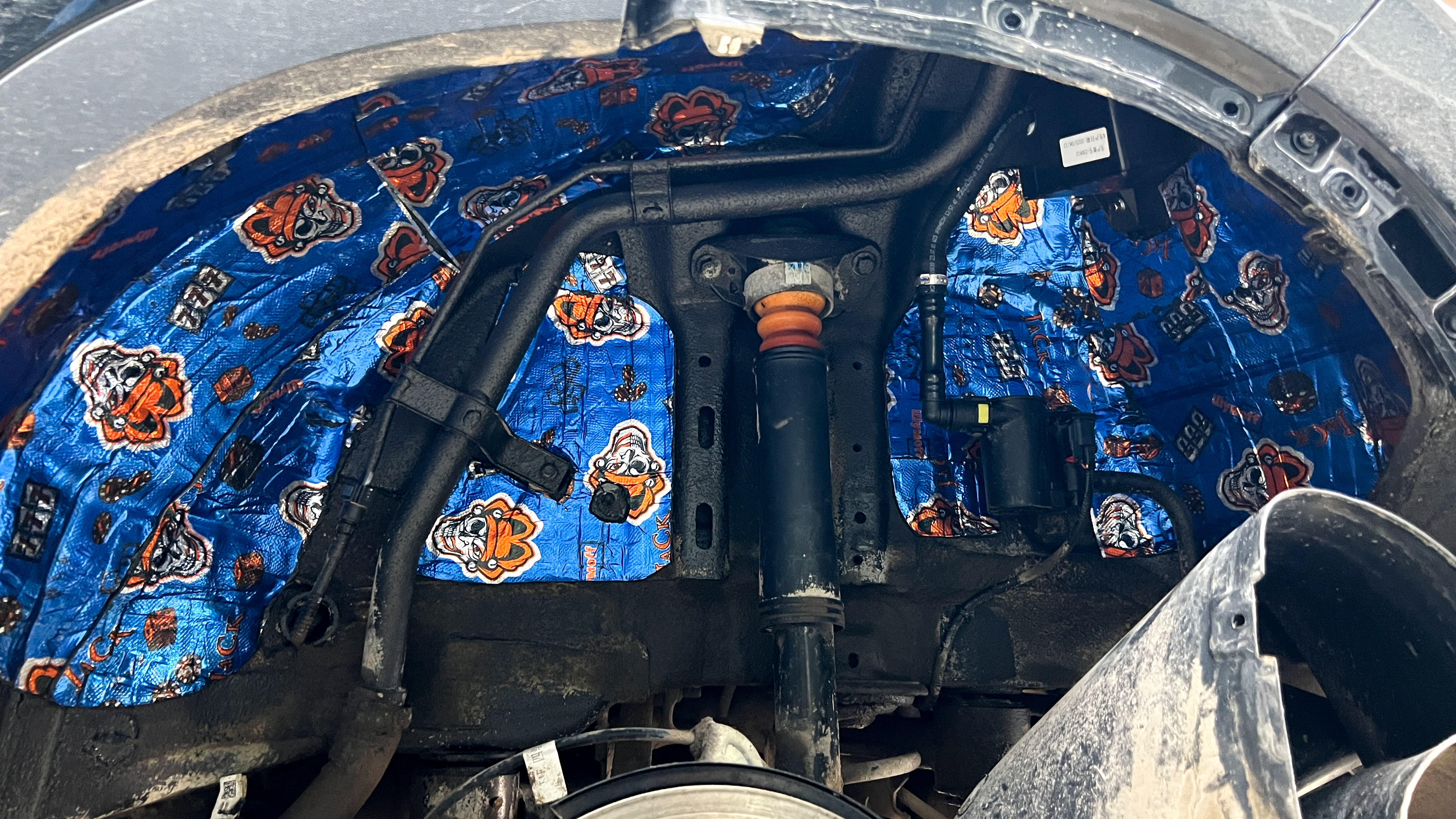 Данный слой отлично устраняет эффект барабана, ведь арки постоянно подвержены воздействиям различных внешних сил, таких как: вода, песок, камни и т.д . Все это, отлетая, создает ощутимые шумы, ведь каждый удар камня создает достаточно шумный резонанс, передающийся в салон. Завершаем шумоизоляцию арок обратной сборкой, устанавливаем подкрылки и колеса на место
