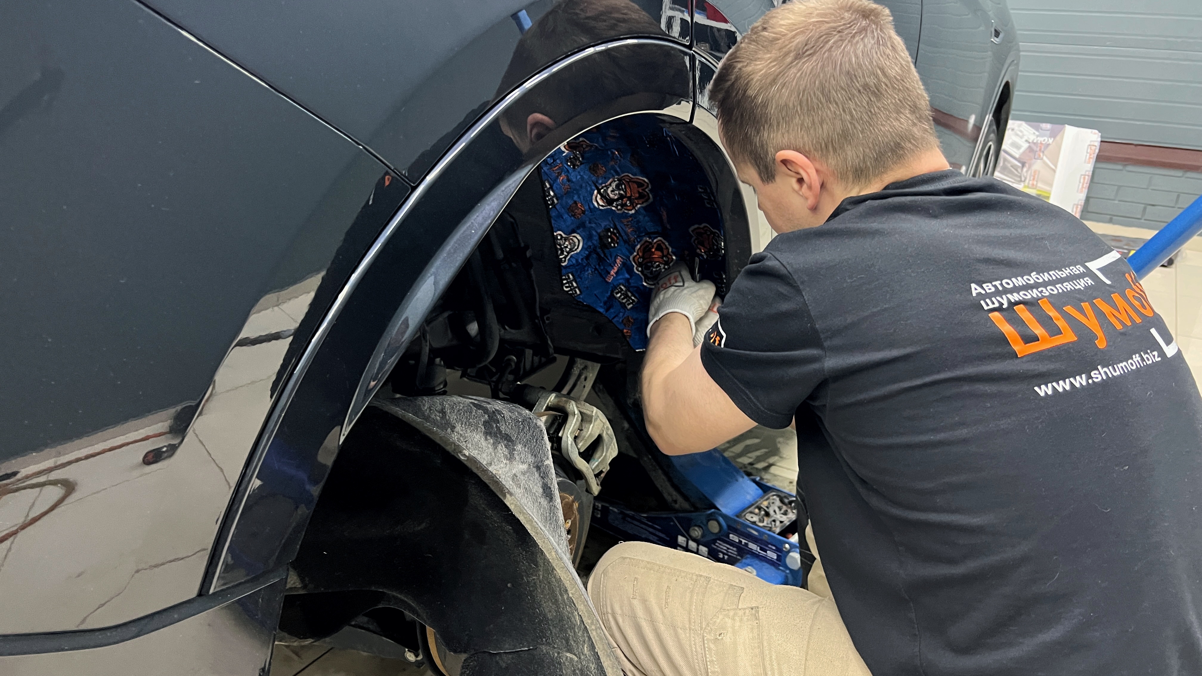 На крылья клеим также Шумофф Base 4 А для участка такого как арки используем шумопоглотитель Шумофф Flex A15. Что также позволит значительно уменьшить исходящий от них шум.