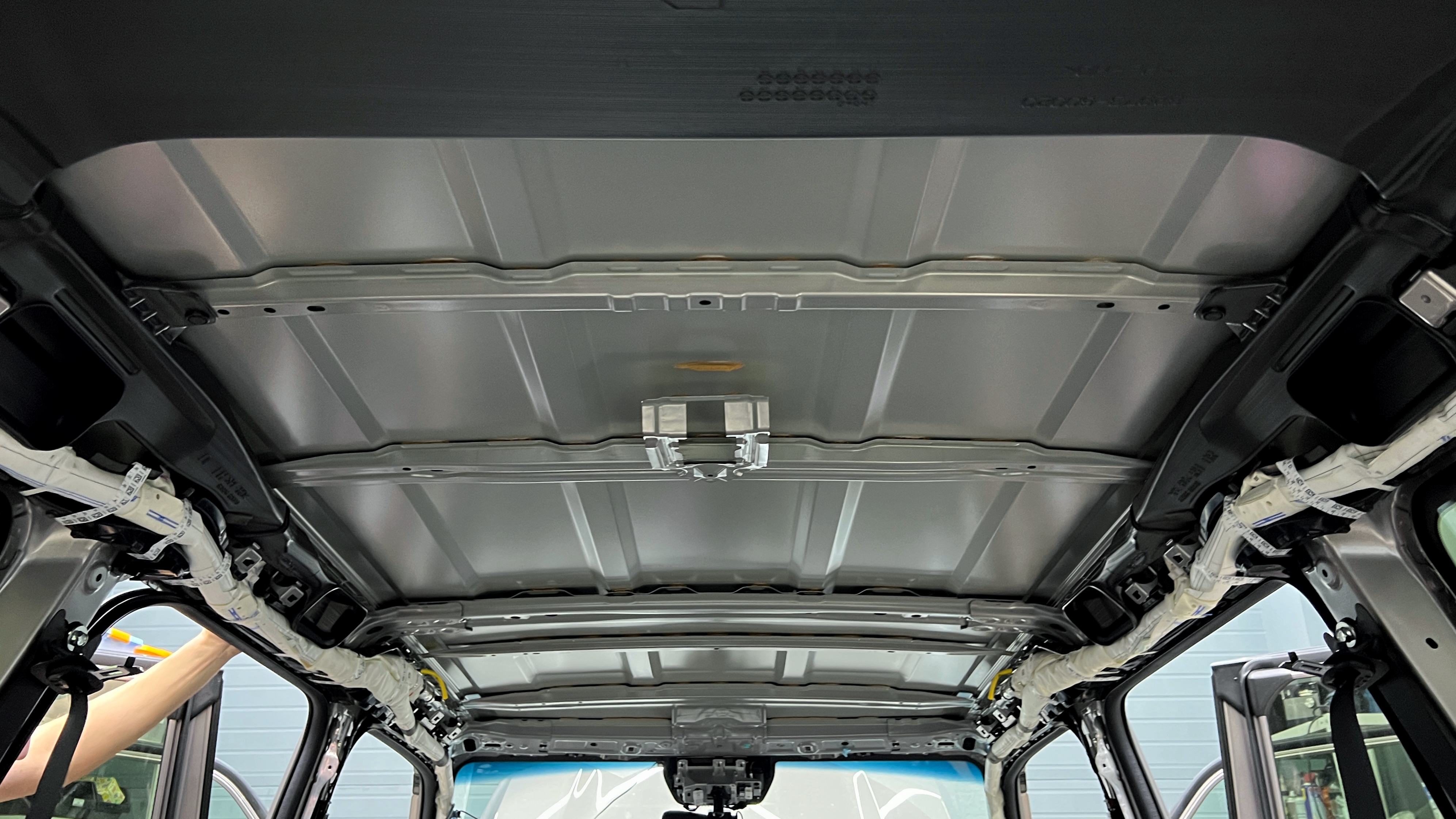 Разбор крыши Тойота Ленд Крузер Прадо 250 Приступаем к разбору крыши. Удаляем штатную шумоизоляцию и обезжириваем поверхность.